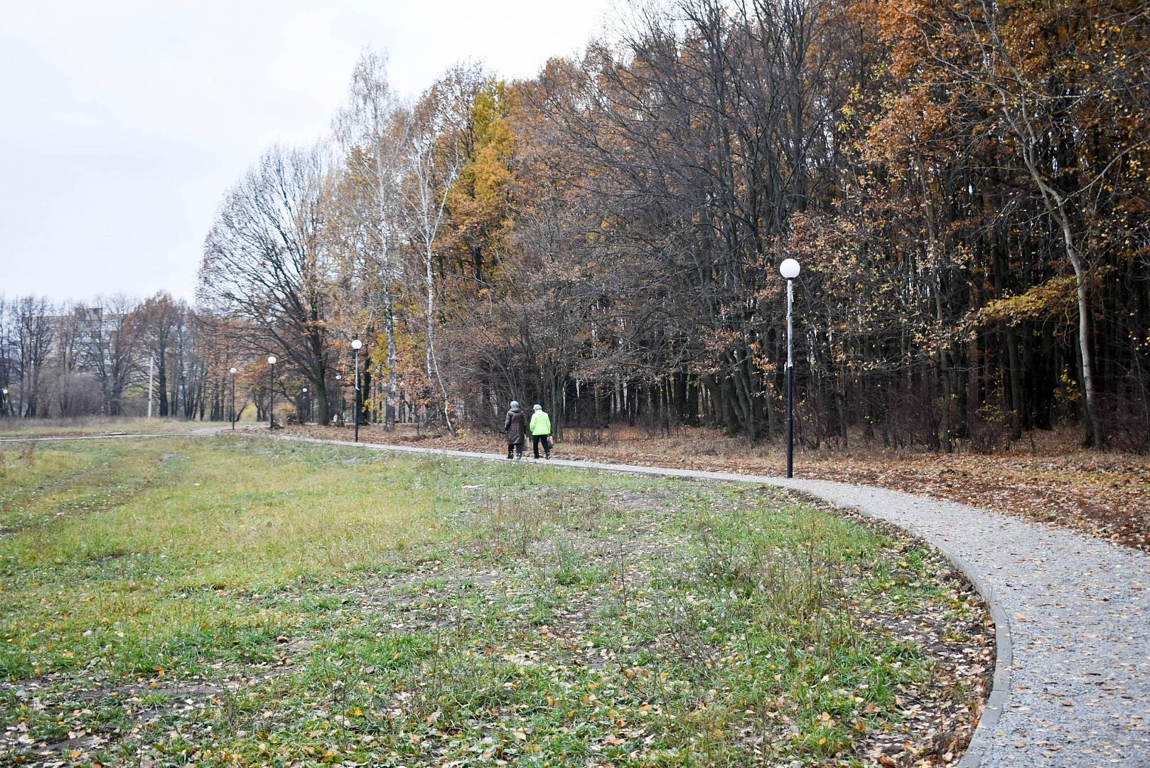 Сейчас на объекте работает ООО «Строительно-монтажное управление-19» (г. Орёл). Уже установлено 33 опоры освещения, по 24 лавочки и урны, игровые площадки, контейнеры, завершено обустройство въезда и парковка. Также до 30 ноября 2020 года подрядчику предстоит установить систему видеонаблюдения и спортивный городок, доделать тропиночную сеть и подключить освещение.