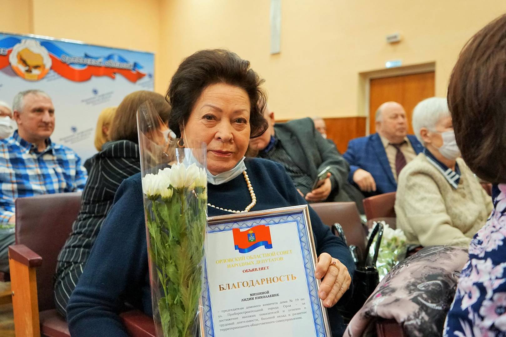 Активистка, экс-начальник управления ЗАГСа по городу Орлу Любовь Скульбицкая, получив благодарственное письмо, попросила у ведущих микрофон и с добрым напутствием обратилась к коллегам: