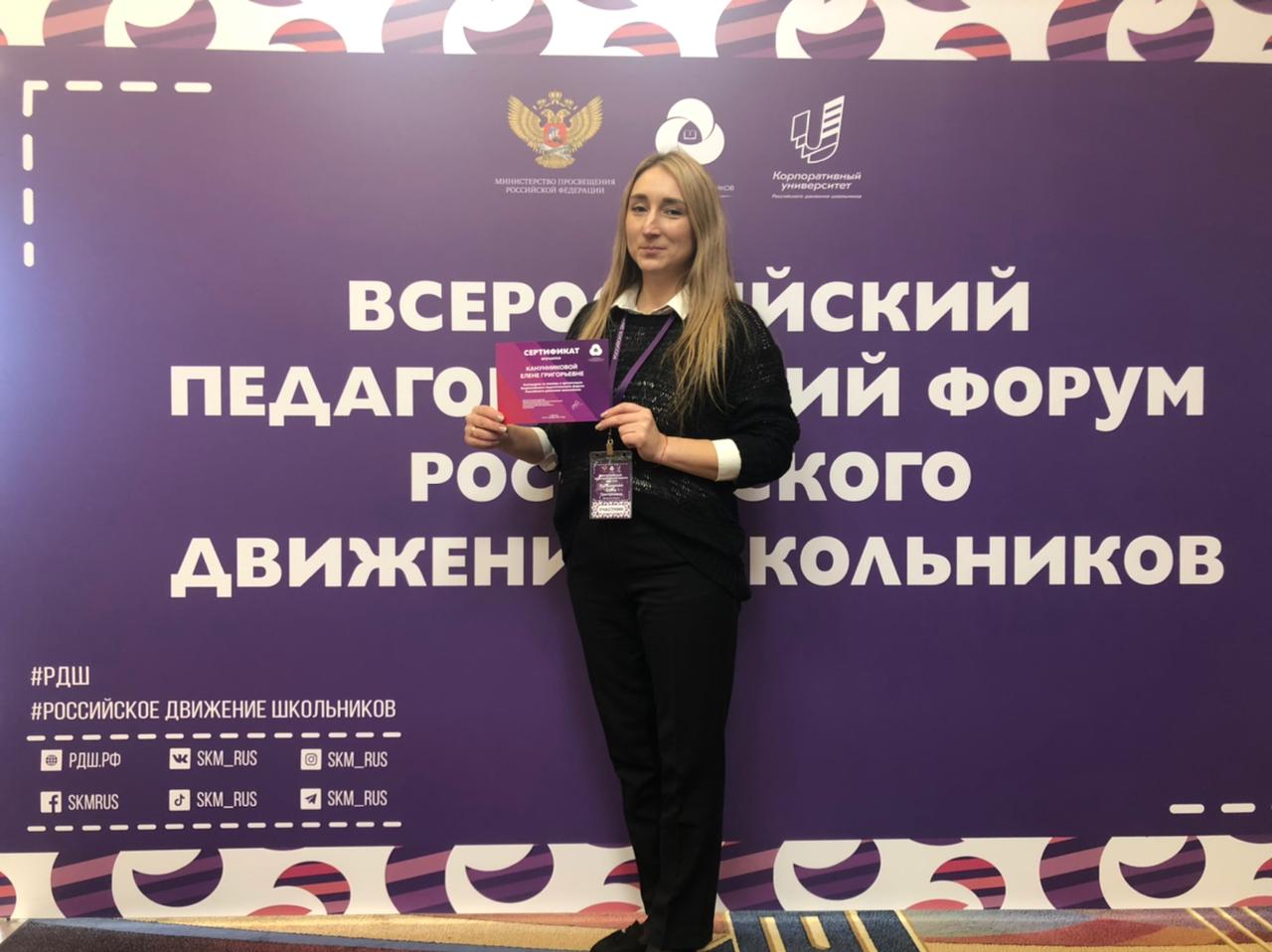 На прошлой неделе в Москве проходил Всероссийский педагогический форум Российского движения школьников (РДШ) по теме: «РДШ и школа: интеграция и консолидация в сфере воспитания». Одним из педагогов, представляющих Орловскую область, стала педагог-организатор старшей школы гимназии №19 им. Героя Советского Союза В.И. Меркулова Елена Канунникова. О самом форуме и не только — из первых уст!