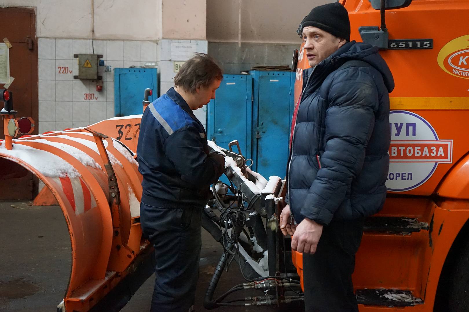 Меньше чем через час в бой выйдут ночные автоколонны: с 19.00 начинается пересменка. Приезжают «ночные» водители, заправляют технику после трудового дня, получают путевые листы и становятся в очередь на выпуск. Ровно в 20.00 вся спецтехника на дорогах Орла. Сегодня это 32 единицы: 16 КДМ, пять самосвалов, пять погрузчиков, четыре трактора и два грейдера.