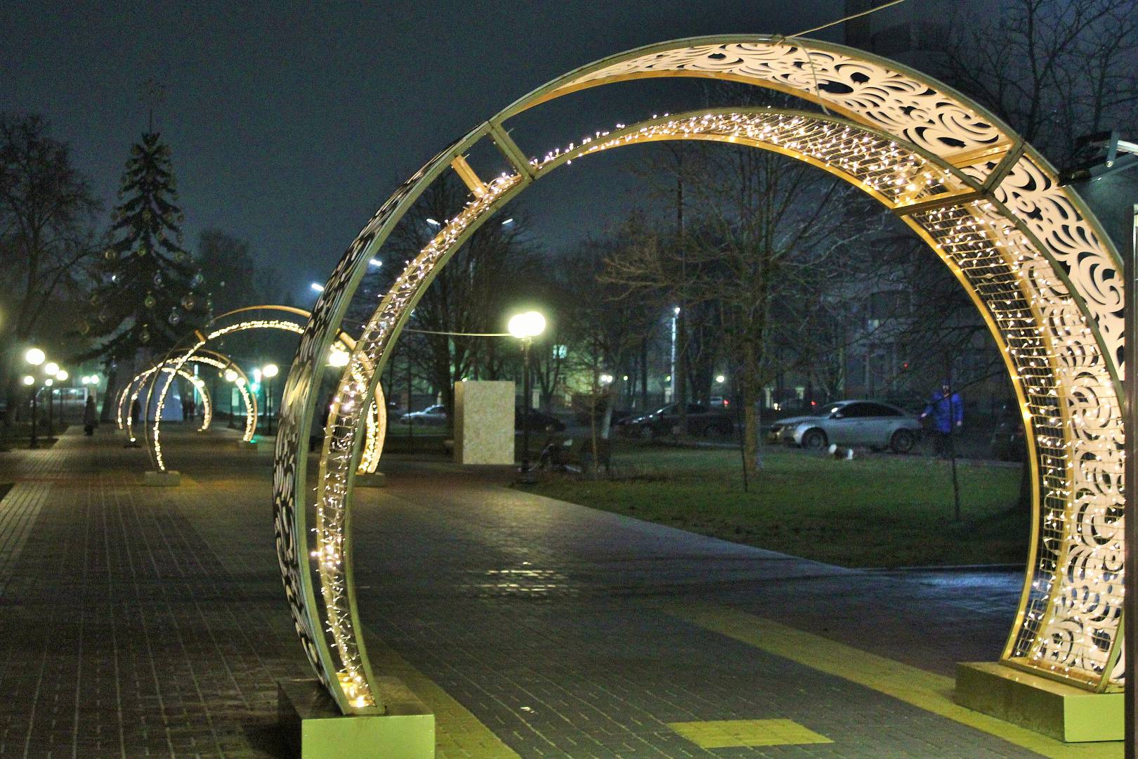 Помимо праздничных деревьев в городе установлены световые консоли, арт-объекты, домики-шале, развешаны гирлянды.