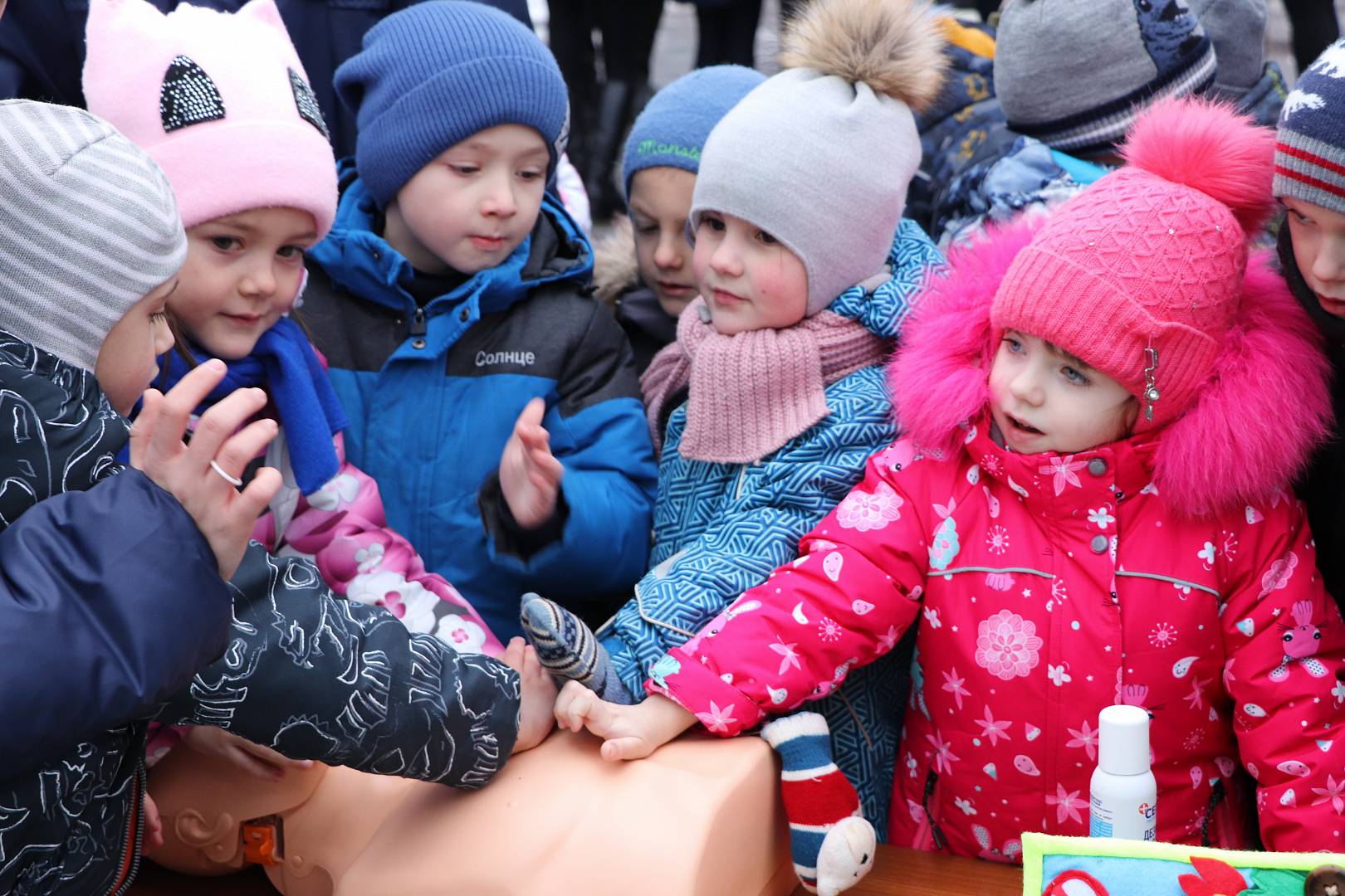 На площадке «Окажи помощь пострадавшему» студенты-добровольцы доступным языком объясняли и демонстрировали детям разного возраста приёмы оказания первой помощи и алгоритм поведения в ЧС.