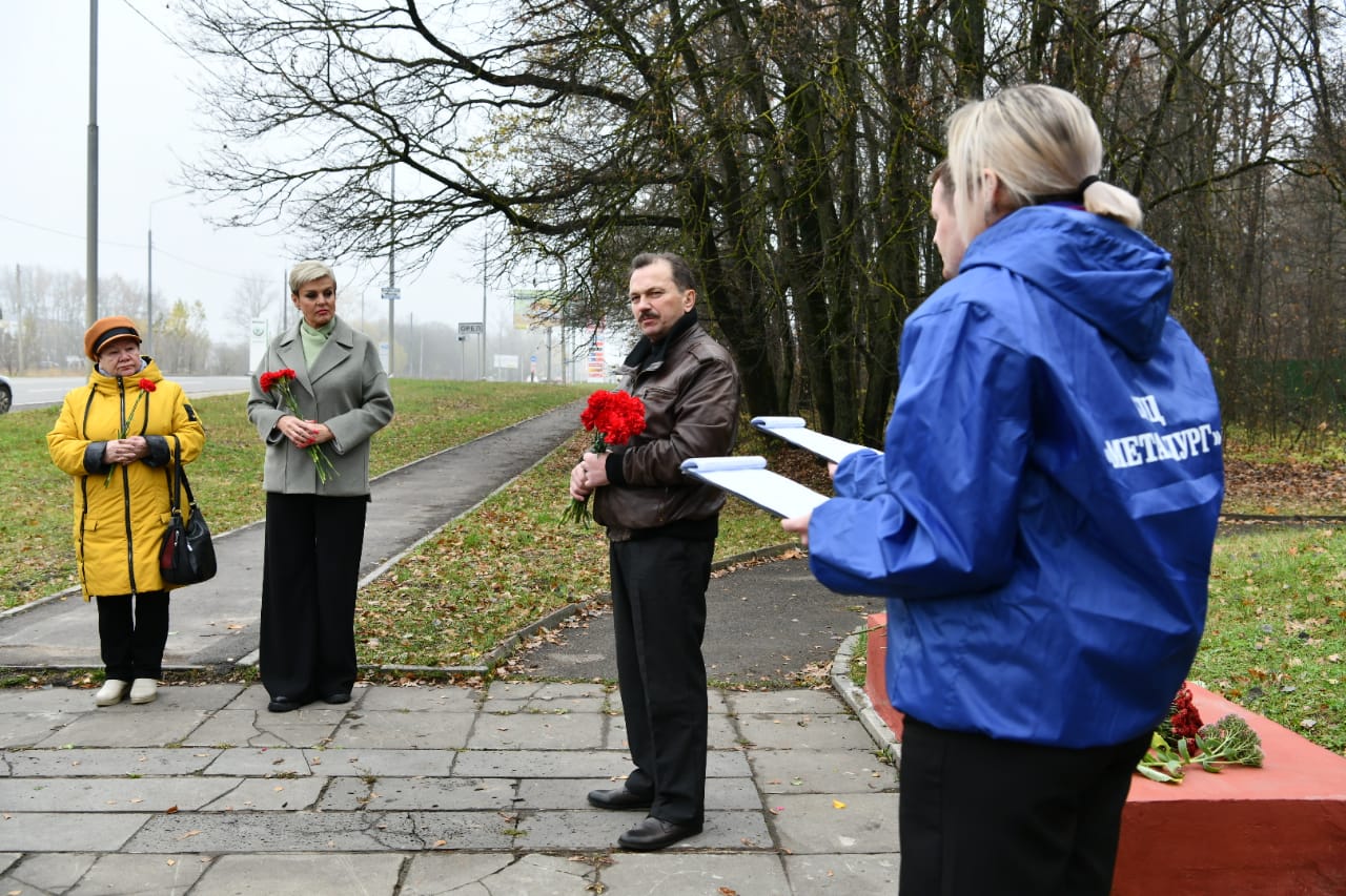 В Северном районе прошёл митинг Памяти. Красные гвоздики к памятнику Жертвам политических репрессий в Медведевском лесу принесли сотрудники администрации Северного района, артисты КДЦ «Металлург».