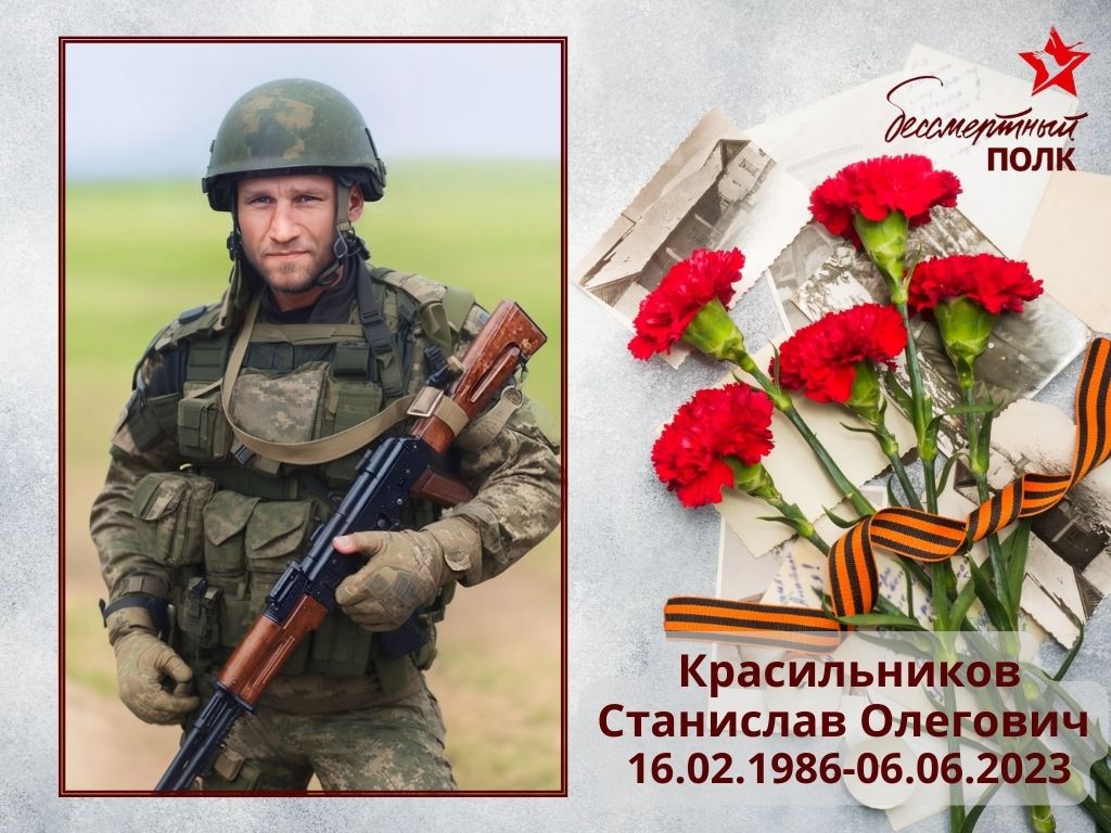 Красильников Станислав Олегович погиб 6 июня 2023 года при выполнении задач в ходе специальной военной операции на территории Запорожской области.