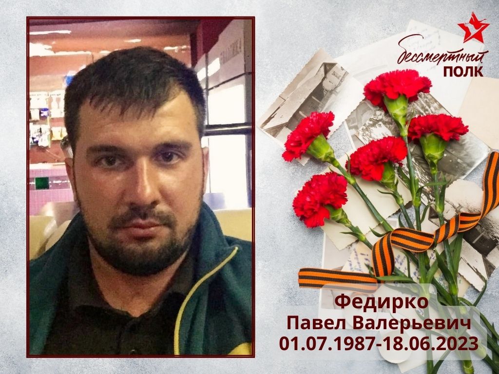 Федирко Павел Валерьевич погиб 18 июня 2023 года при выполнении задач в ходе специальной военной операции.
